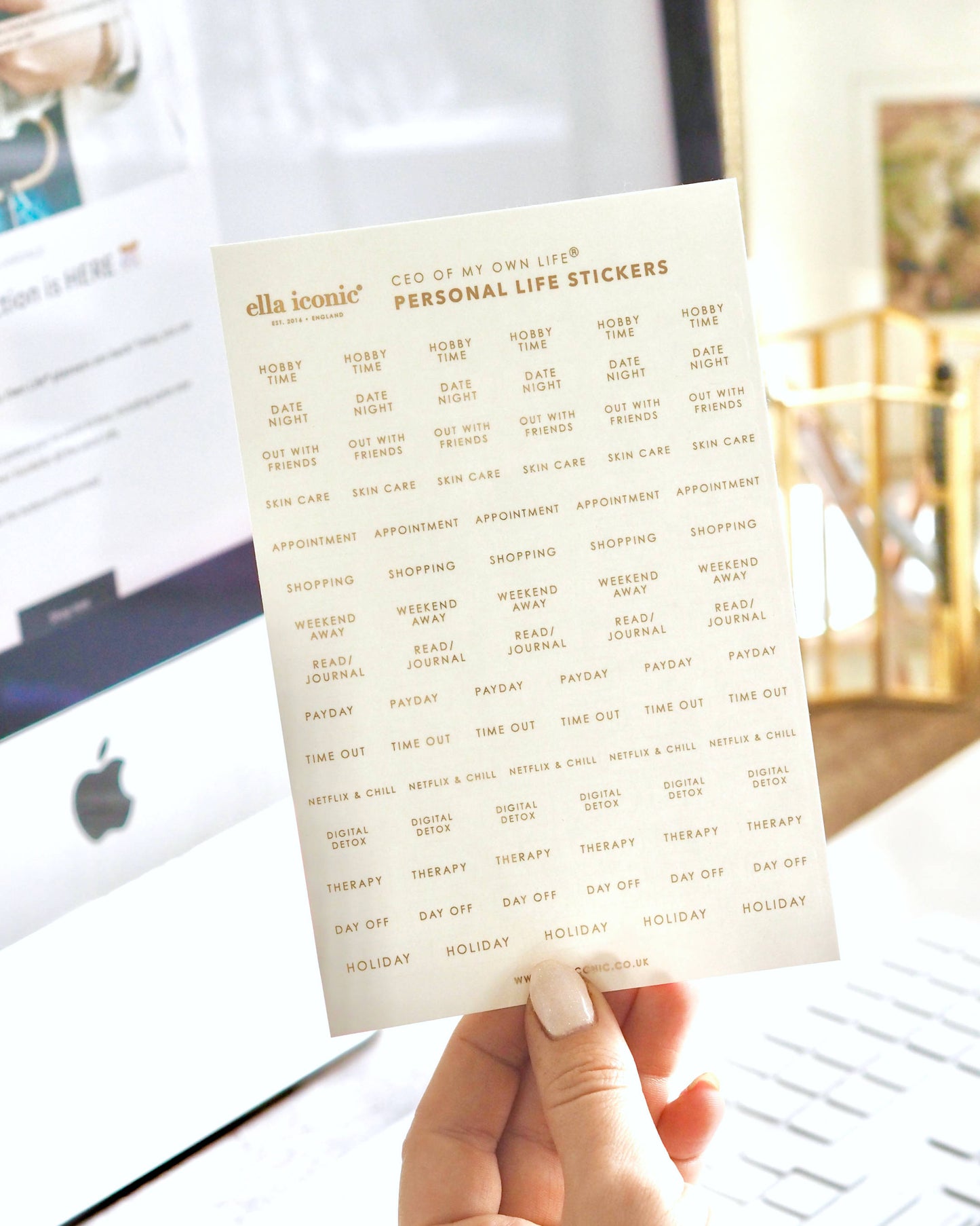 335 mini rose gold stickers for every area of your life: work, home life, health and personal life.