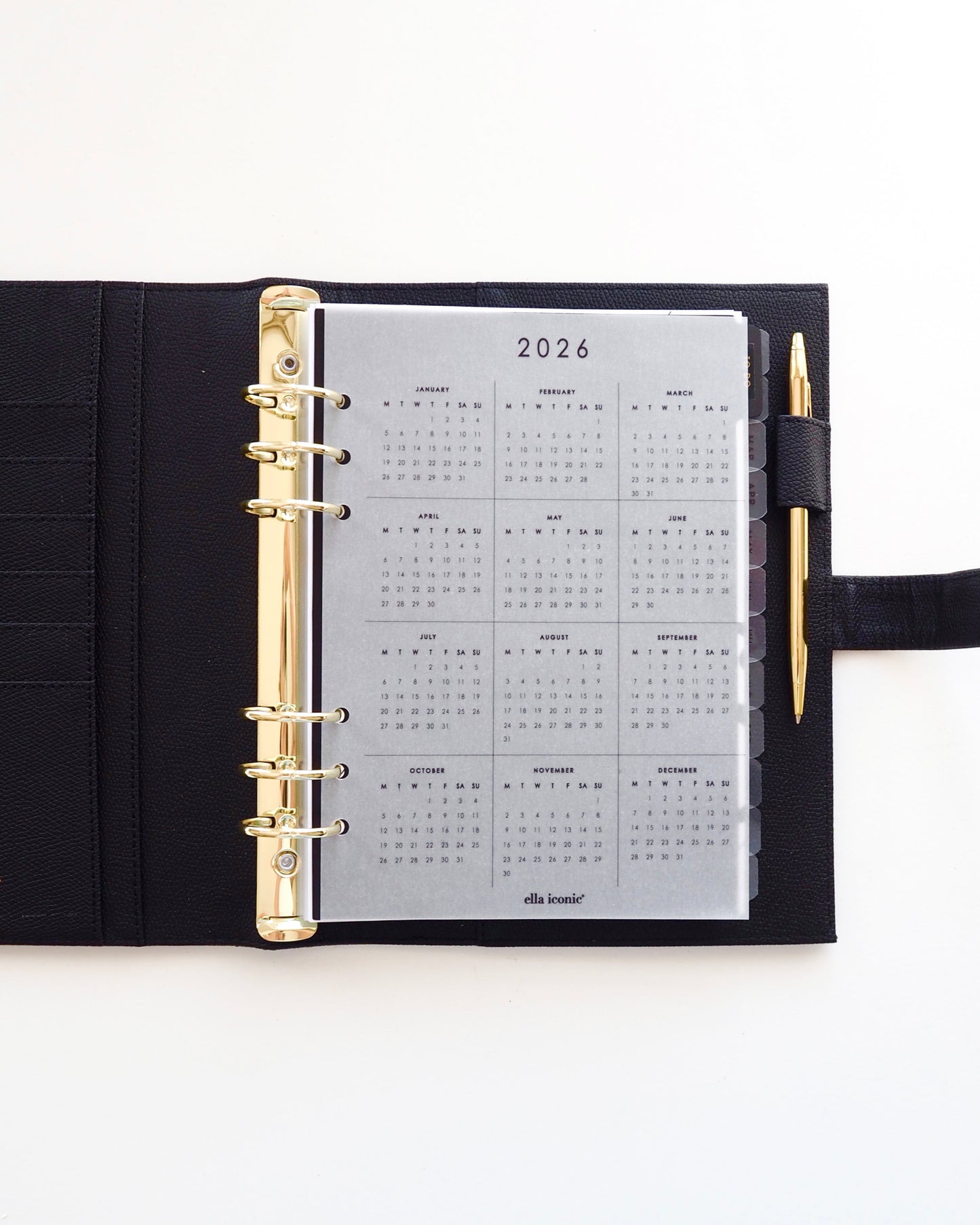 A must have for any planner. Minimalistic 2026 calendar printed on a semi translucent A5 vellum paper, adding a touch of sophistication and elegance to your trusted agenda.