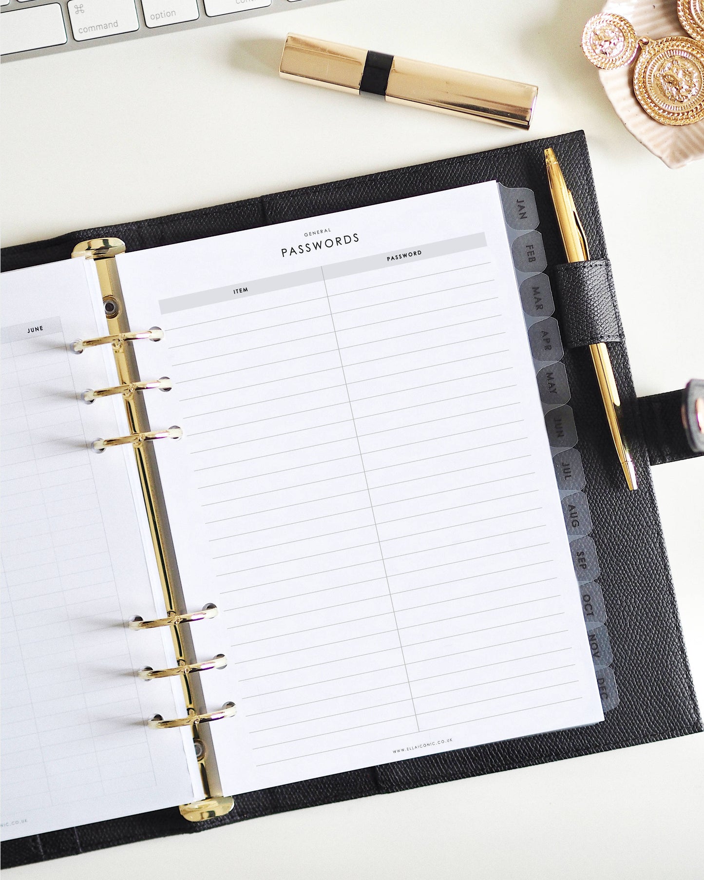 This password insert is compatible with most 6-ring binders, such as A5 Filofax, large ring GM LV agendas.