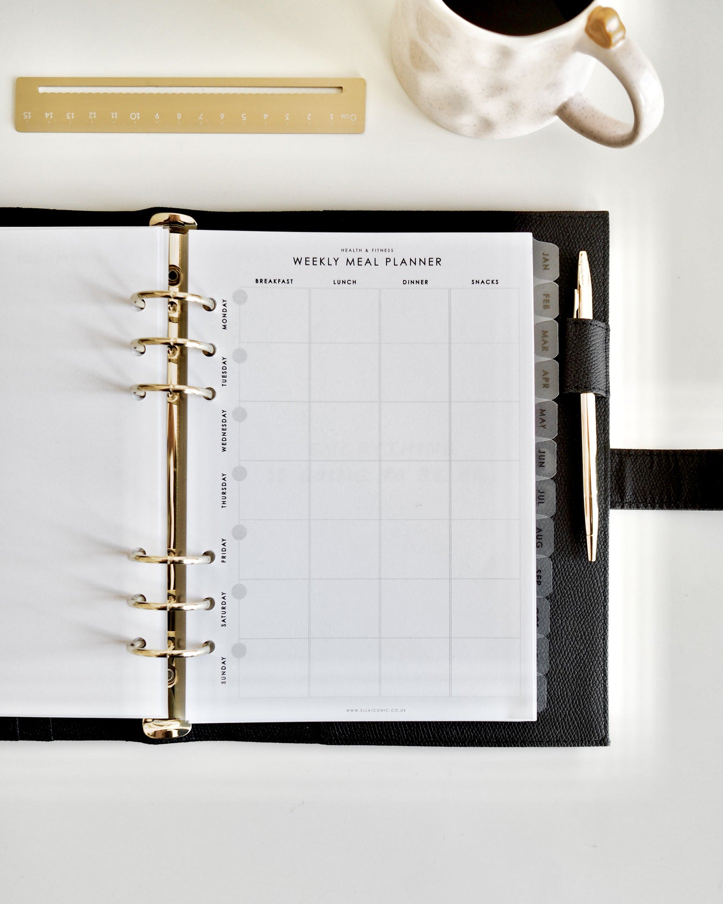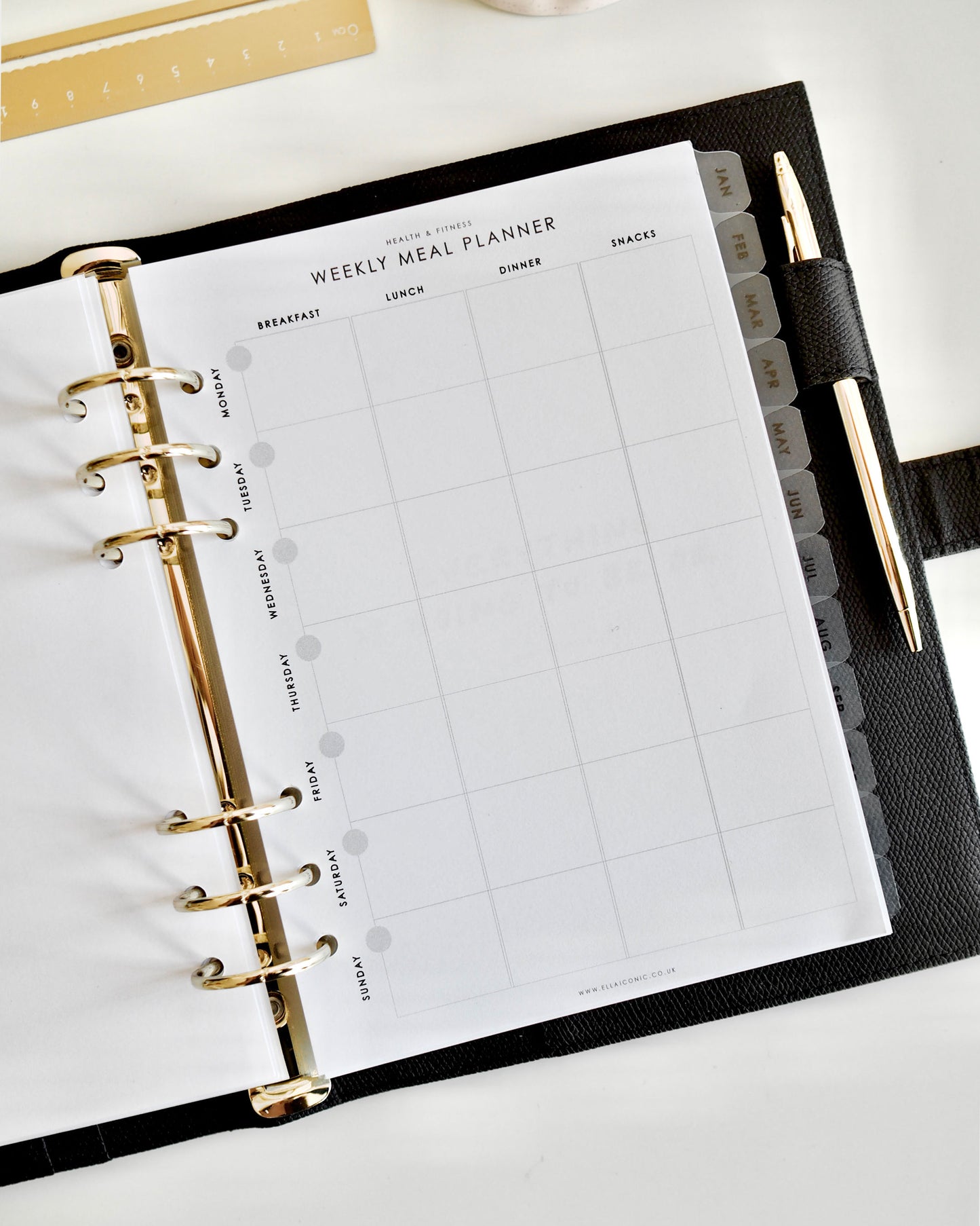 Weekly meal planner inserts to plan and organise breakfasts, lunches, dinners, and snacks for the entire week. Each set comes with four weekly spreads.