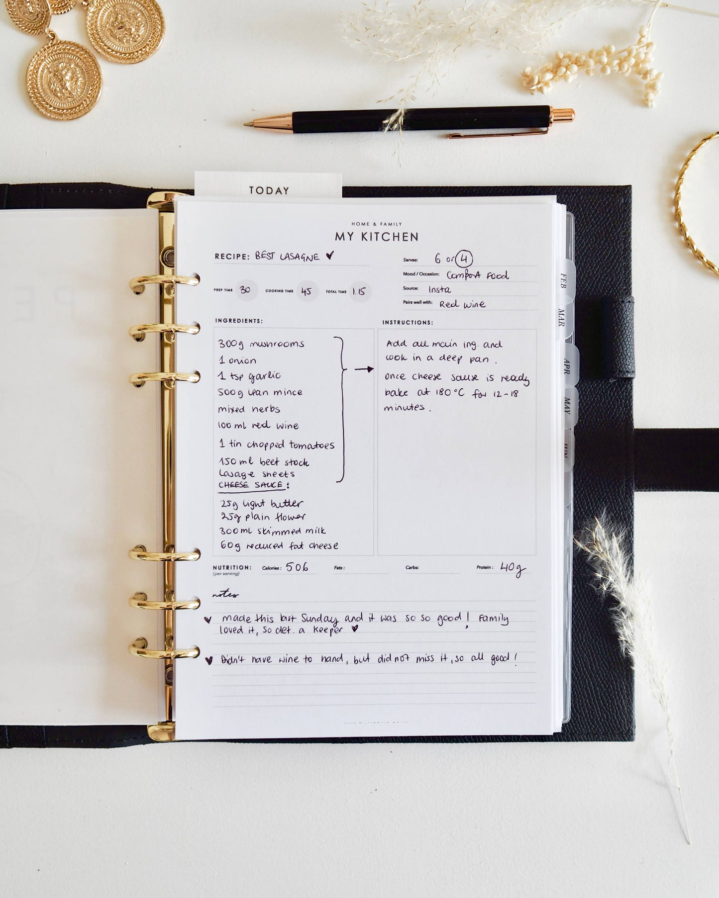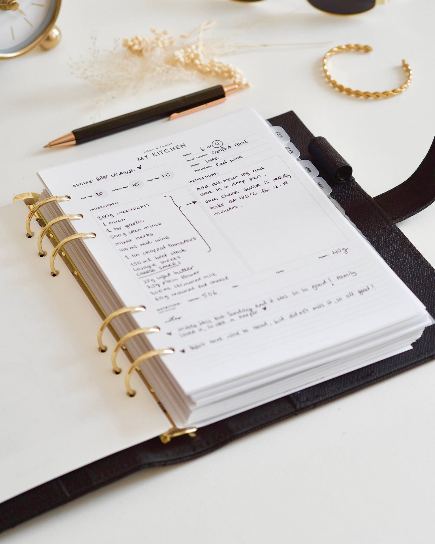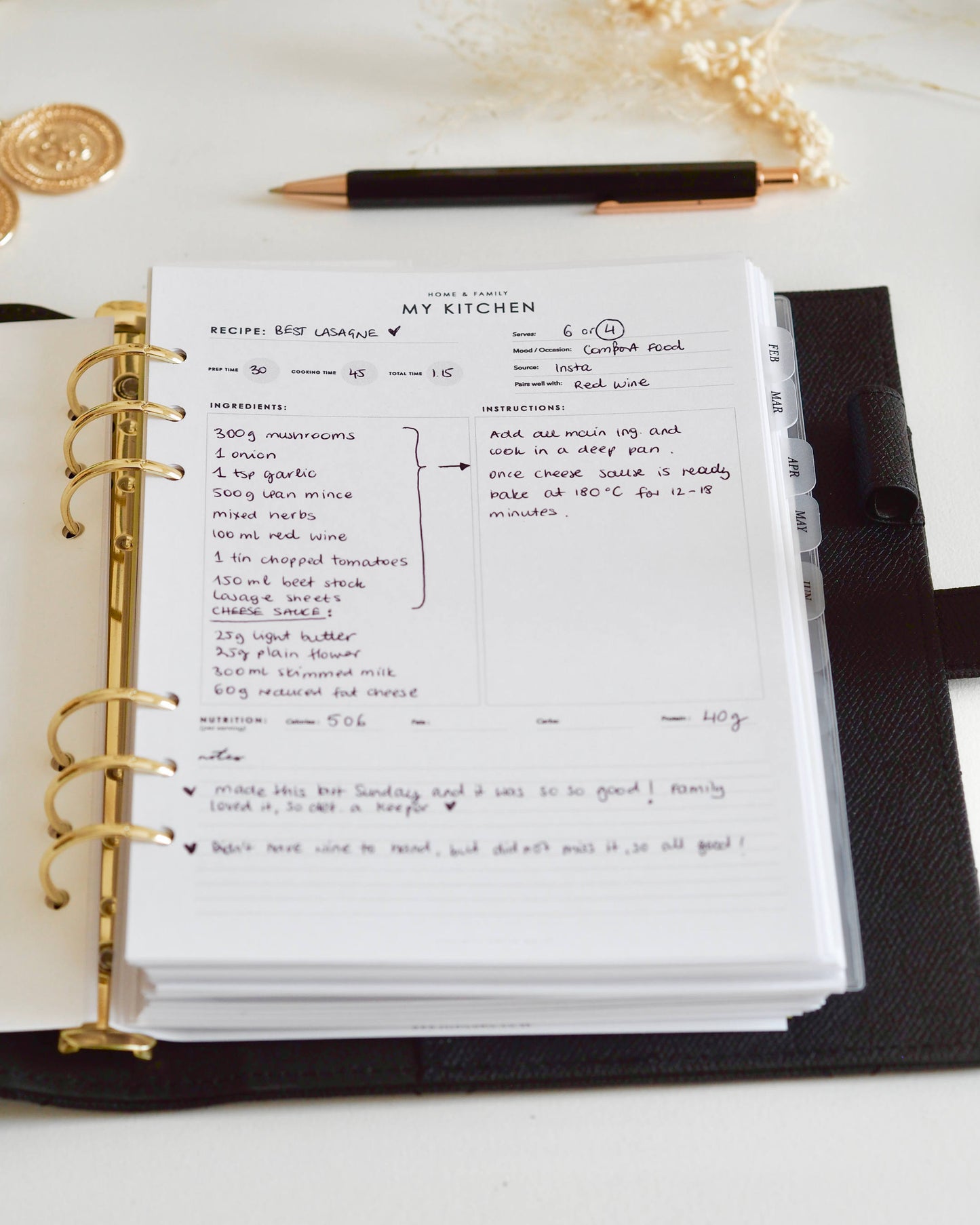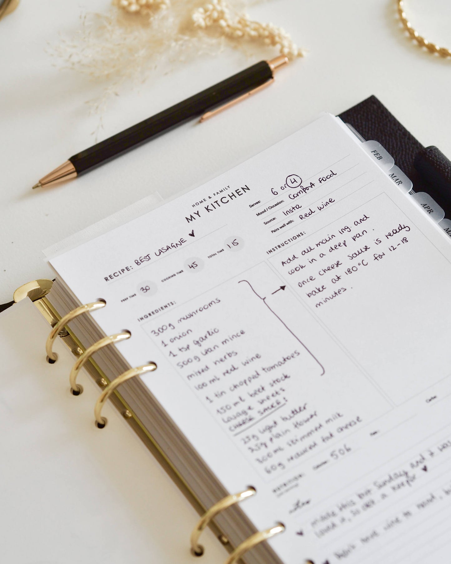 Have your favourite recipes on hand in your favourite planner using these elegant 'My Kitchen' A5 planner inserts. Sections to capture all the required information such as servings, nutrition, ingredients and instructions.