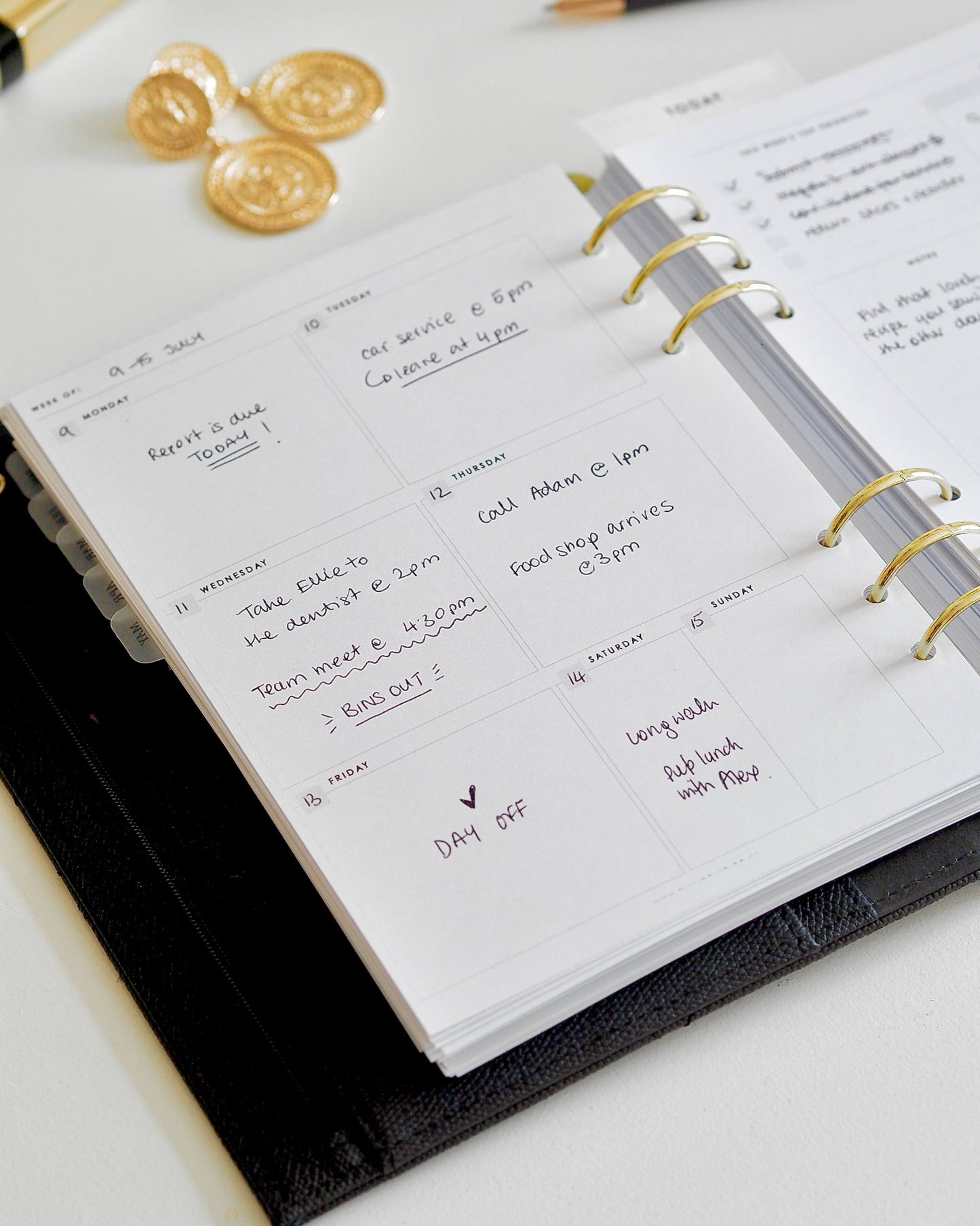 Undated A5 weekly planner inserts (week on one page layout) for 52 weeks. Use as and when required, - no more wasted inserts!