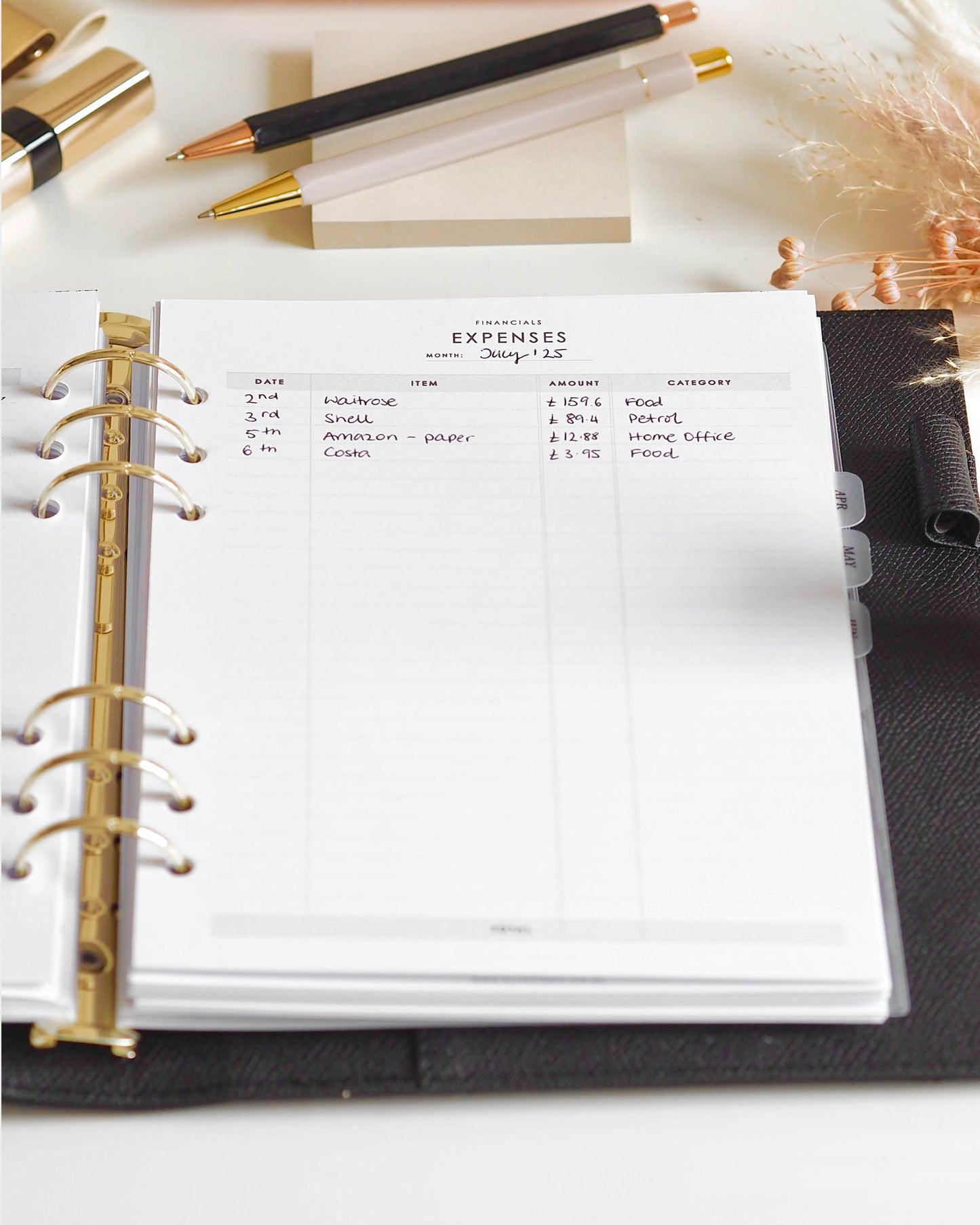 This set comes with twelve expense tracking spreads to cover you for a full year. They are undated, allowing you to start at any time.