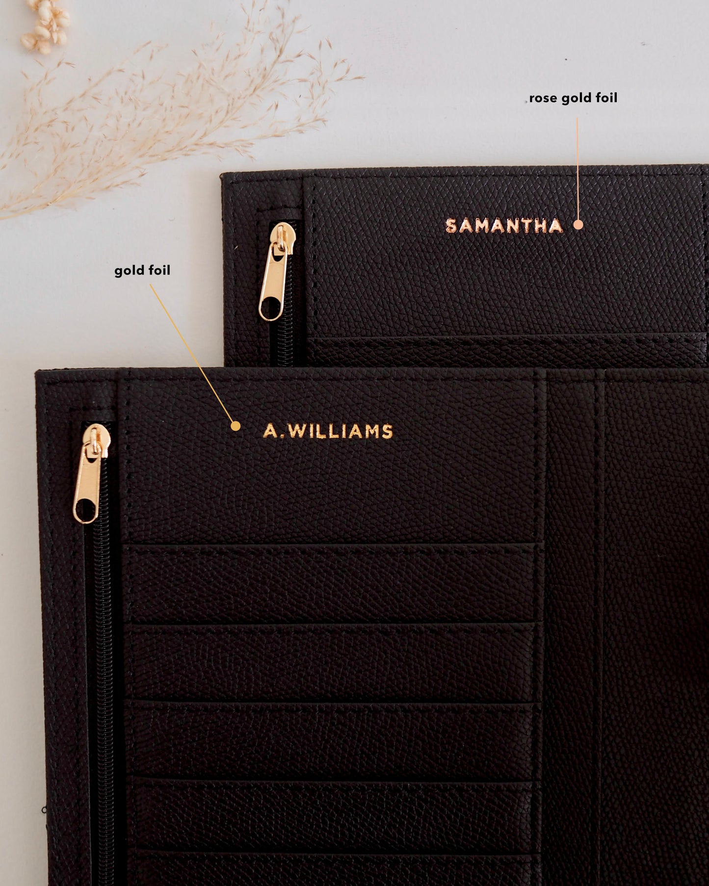You can also personalise this ring binder with up to 14 characters, in gold or rose gold foil. (In English alphabet only. No numbers, or emojis. It will be monogrammed at the top on the inside in capital letters, i.e. 'EMMA'. Allow extra 2 working days for this service.)