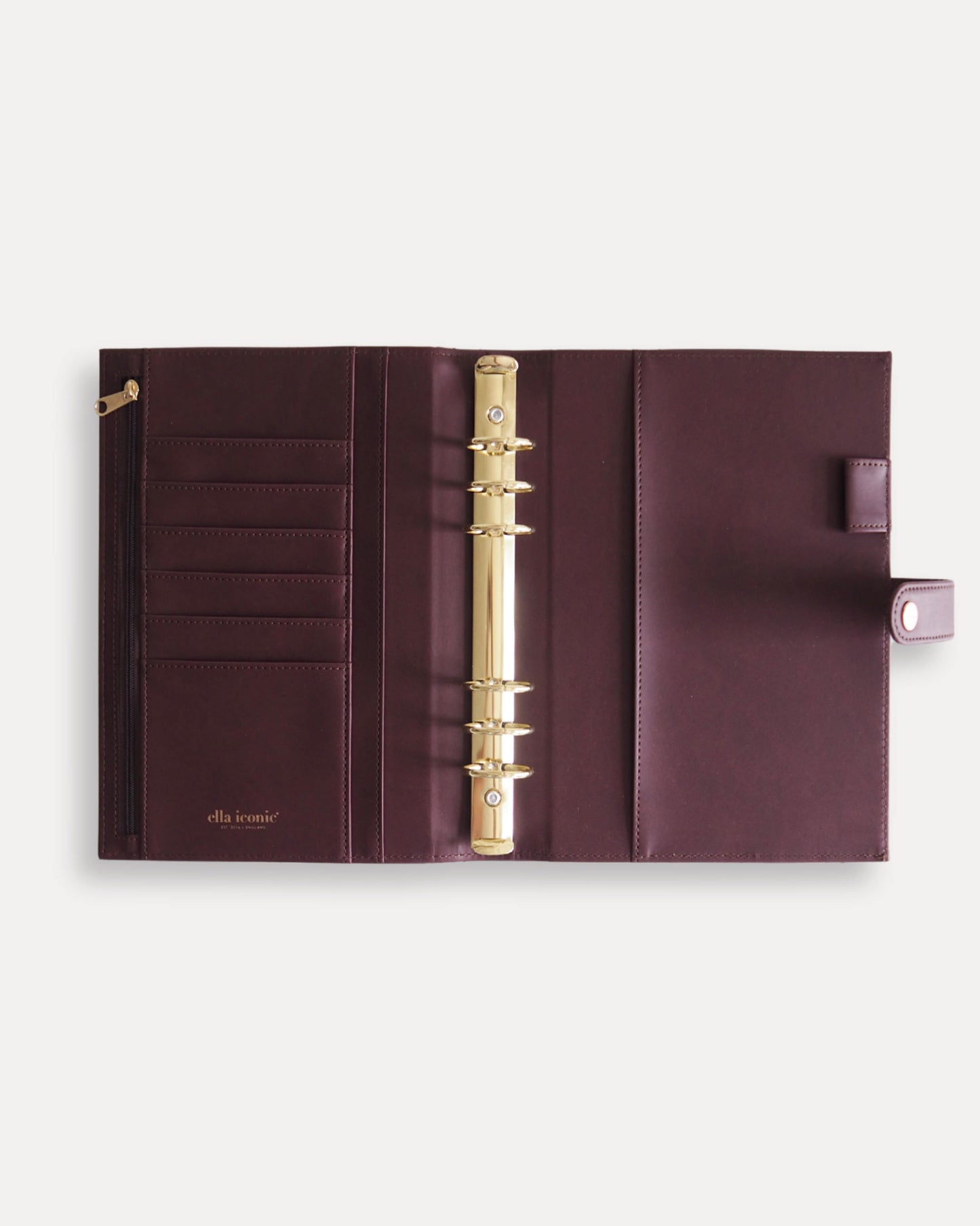 Add a touch of luxury to your everyday with this elegant ella iconic® premium vegan leather A5 ring binder in Chocolate Burgundy. A unique blend of colours with burgundy being dominant with a subtle undertone of rich chocolate brown.