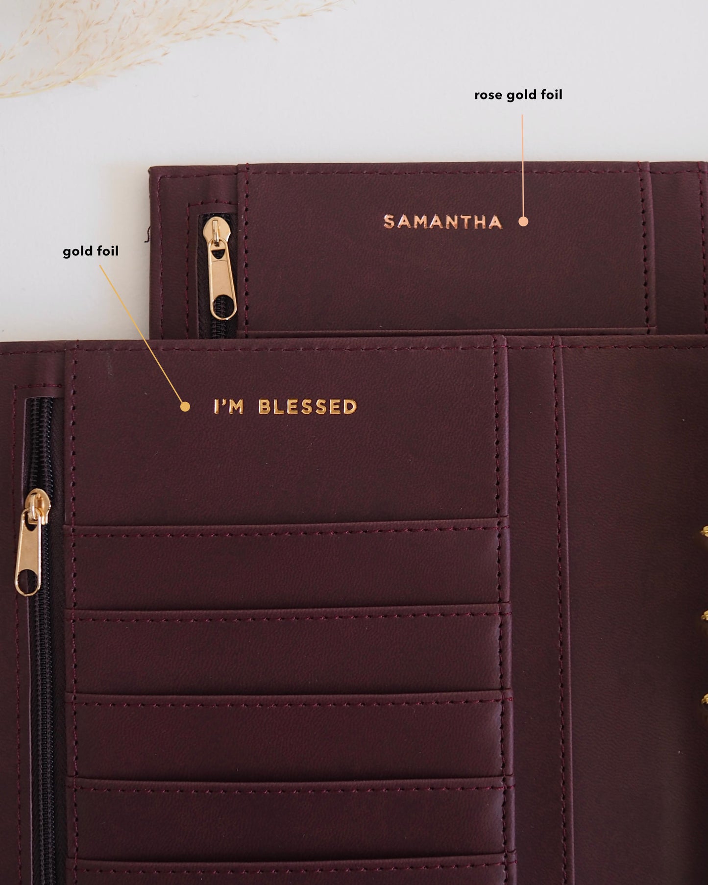 You can also personalise this ring binder with up to 14 characters, in gold or rose gold foil. (In English alphabet only. No numbers, or emojis. It will be monogrammed at the top on the inside in capital letters, i.e. 'EMMA'. Allow extra 2 working days for this service.)