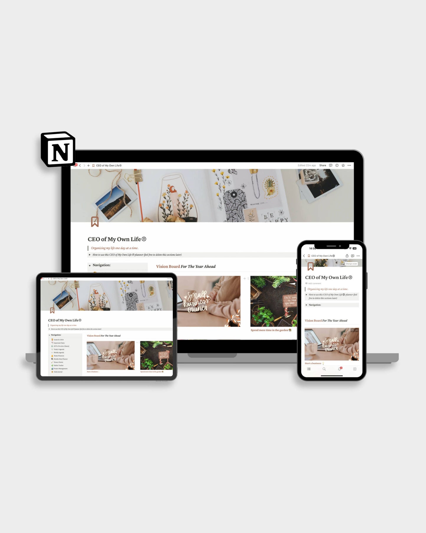 Explore our range of digital life planners, including the flagship CEO of My Own Life® planner, as well as agendas and other digital journals that will help you stay beautifully organised throughout the year. Available for GoodNotes iOS and Notion.