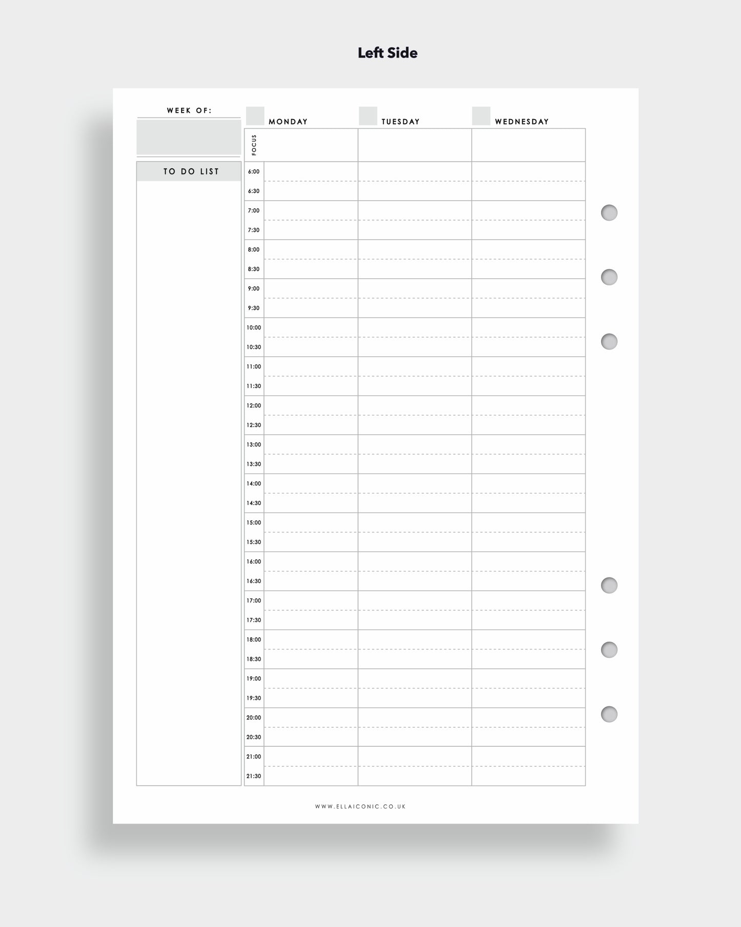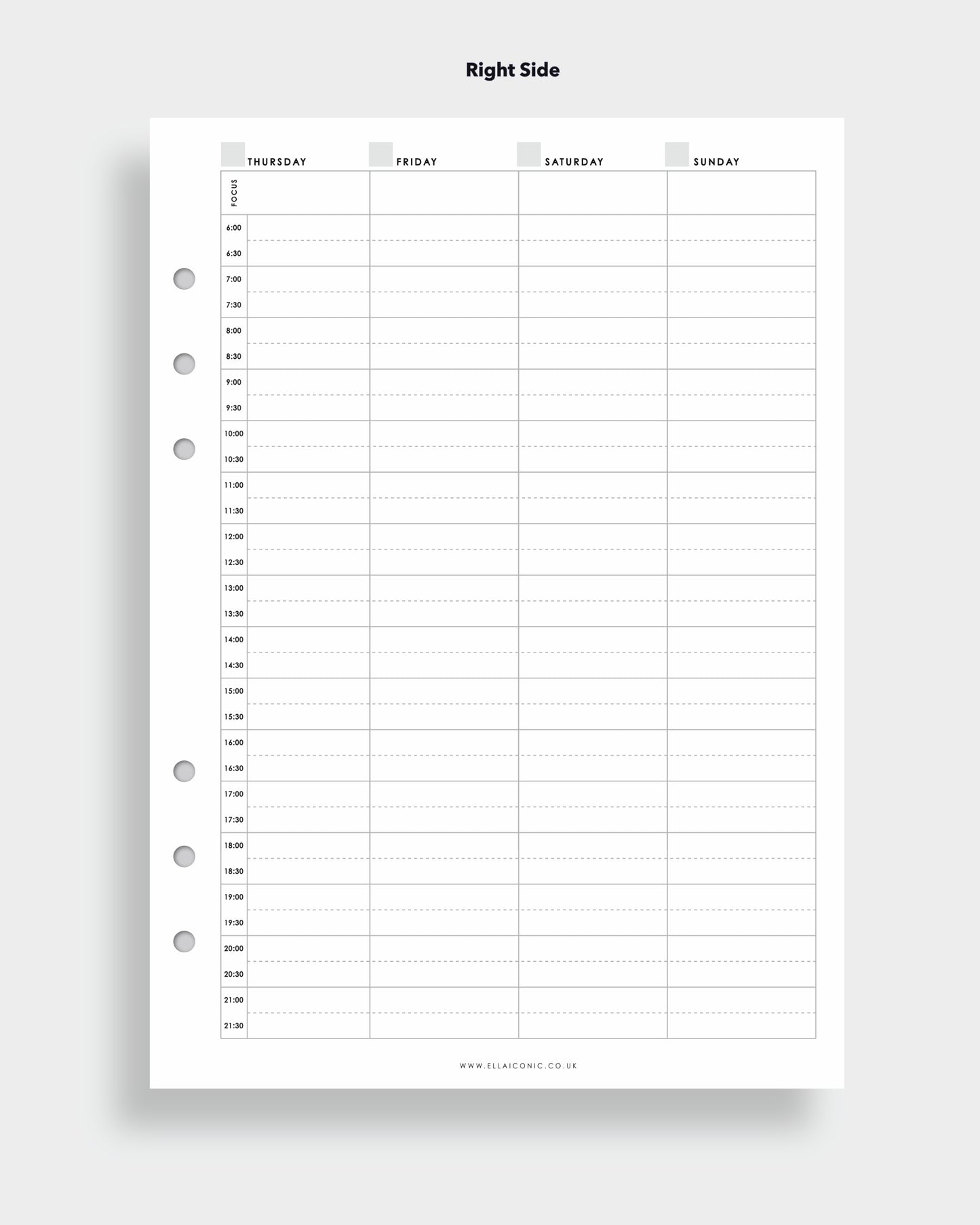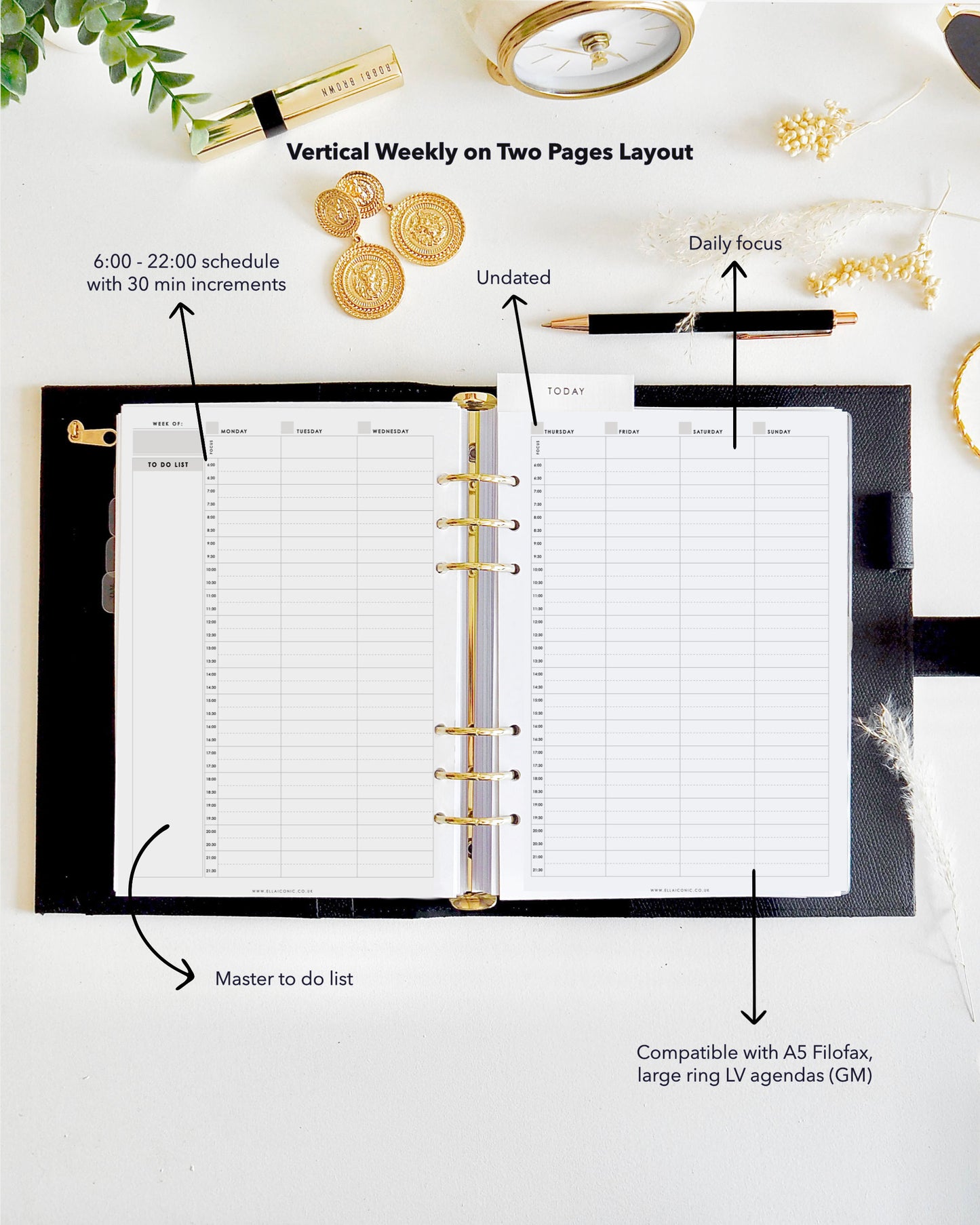 A5 Weekly Planner Inserts • Week on Two Pages | Vertical | Timed