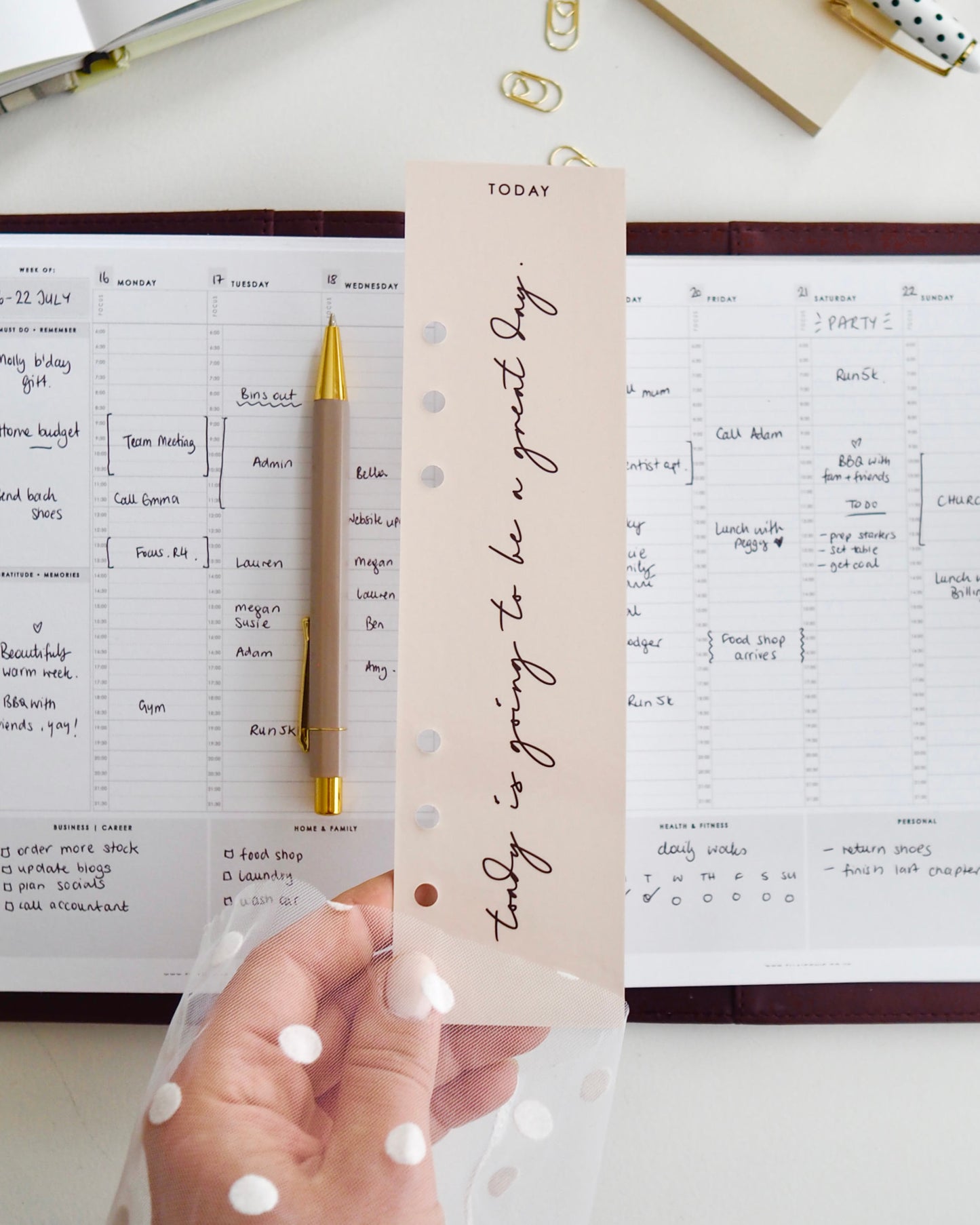 'Today' double sided blush planner page marker with an inscription 'today is going to be a great day.'